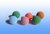 5、金鋼砂膠球物理性能高:經(jīng)檢測,球體在45~60度水中48小時不膨脹,在沸水中不間斷48小時膨脹率在5%以下;正確使用不掉砂。