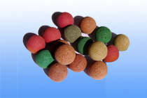 裝球室是凝汽器、冷凝器、冷卻器、冷油器、熱熱器膠球清洗裝置中用于加球、收球、換球及觀察膠球運(yùn)行情況的一種設(shè)備。 6、分匯器---三通閥。膠球通過其中導(dǎo)向板的切換可使膠球進(jìn)入需要清洗的冷卻管。也可作為收球網(wǎng)膠球引出管的匯合和接球管的分流三通管使用。 7、膠球---普通膠球---剝皮膠球---海棉膠球---中軟膠球---金剛砂膠球---半金剛砂膠球 ①普通膠球 普通膠球表面光滑,主要用于可再剝皮磨打后制成標(biāo)準(zhǔn)剝皮膠球,一些發(fā)電廠因管道無較硬沉積才定購光膠球,一般用于不銹鋼管。但對銅管使用的效果不佳。 主要用于去除軟性污垢,適用于冷卻水應(yīng)用場合,淤泥、粘泥、泥砂等.適用于銅管換熱器。 ②剝皮膠球