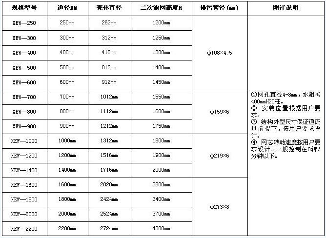 ①網孔直徑4-8mm,水阻≤400mmH2O柱。 ② 安裝位置根據(jù)用戶要求。 ③ 結構外型尺寸保證通流量前提下,按用戶要求設計。 ④ 網芯轉動速度按用戶要求設計。一般控制在8轉/分鐘以下。 五、二次濾網安裝及注意事項 1) 二次濾網可臥式或立式安裝在凝汽器循環(huán)水進口管上,也可安裝在循環(huán)水泵出口,其效果相同。還可以根據(jù)用戶的不同情況另行設計。 2) 二次濾網進水擴容段的直徑應大于循環(huán)水管道直徑。 3) 安裝尺寸可根據(jù)用戶的現(xiàn)場情況確定。必須要有地面基礎緊固。 4) 二次濾網與凝汽器循環(huán)水管連接方式采用法蘭連接,并在二次濾網與凝汽器之間加裝補償節(jié),便于檢修裝拆和補償之用。 5) 安裝后,須清除濾網前循環(huán)水管中的一切雜物,投運前,并作運行試驗。 六、二次濾網定貨須知 1、 需方提供安裝方案(立式安裝、臥式安裝、垂直90度安裝)、接管通徑根據(jù)需要方提供安裝尺寸或原二次濾網圖紙進行設計。 2、 用戶有特殊環(huán)境,我公司將派人現(xiàn)場勘察另行設計。